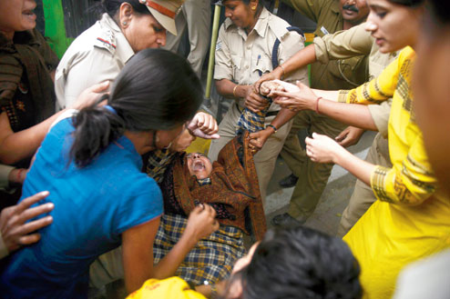 New Delhi, Nov. 6: Fatima Nafees, the mother of JNU student Najeeb Ahmed, was today dragged, bundled into a police bus and driven to a police station over 16km away as Delhi police cracked down on a protest near India Gate.