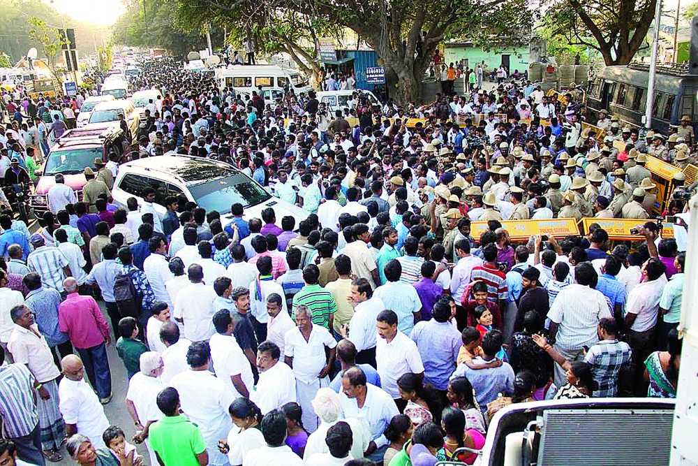 Yet no one expected anti-Sasikala protesters to spring a surprise close to the spot where policemen and media personnel waited for the arrival of Sasikala to the prison where she had spent 21 days with her "Amma" in October 2014.