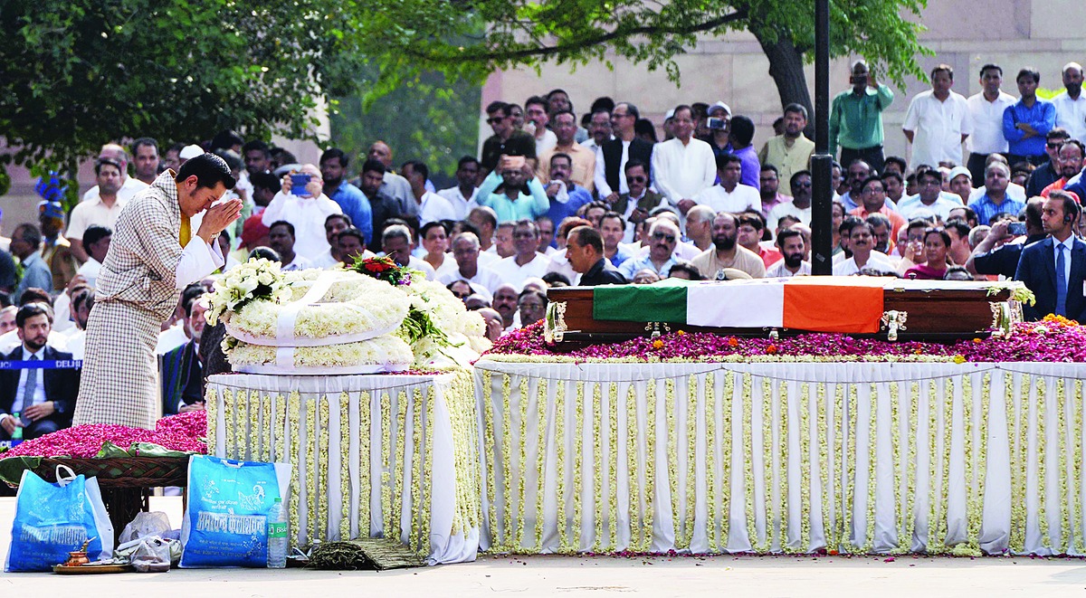 Bhutan had the highest level of representation with the monarch, King Jigme Khesar Namgyel Wangchuck, himself coming to offer homage. He, along with the other foreign dignitaries, were escorted to the cremation ground together by external affairs minister Sushma Swaraj.