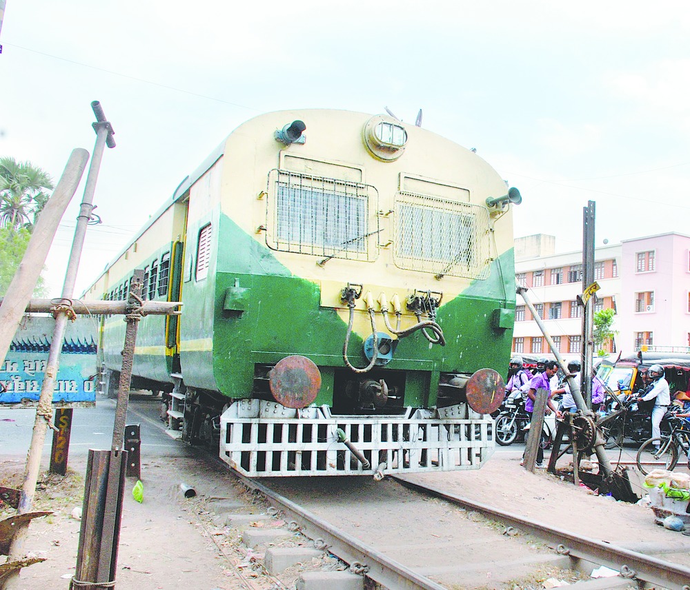 The train between R-Block railway station and Digha passes through the busy Hartali Mor five times a day at peak hours, triggering traffic jams and leaving commuters stranded.