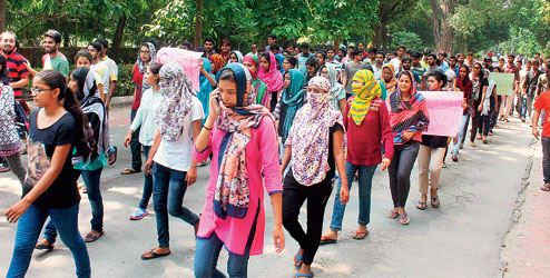 At BHU, the protesting students had hung a large hand-painted banner over the campus gate yesterday that took a dig at Modi's flagship pro-girl child initiative, saying: " Bachegi beti tabhi toh padhegi beti (Only if daughters survive can they study)."