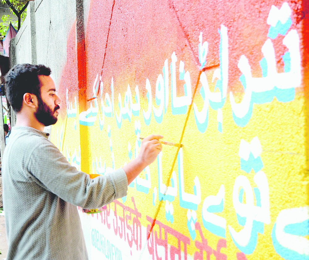 New Delhi, July 28: Goons had forced artists painting Urdu poetry on a public wall to deface their work two months ago.
