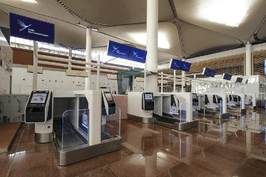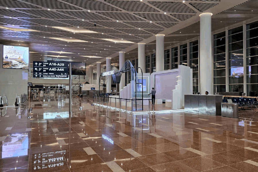 Airport authorities said the terminal design draws inspiration from Indian heritage, featuring elements such as the ghats of Varanasi and Haridwar, haveli-style architecture with courtyards, and the use of local materials, art and lattice screens.