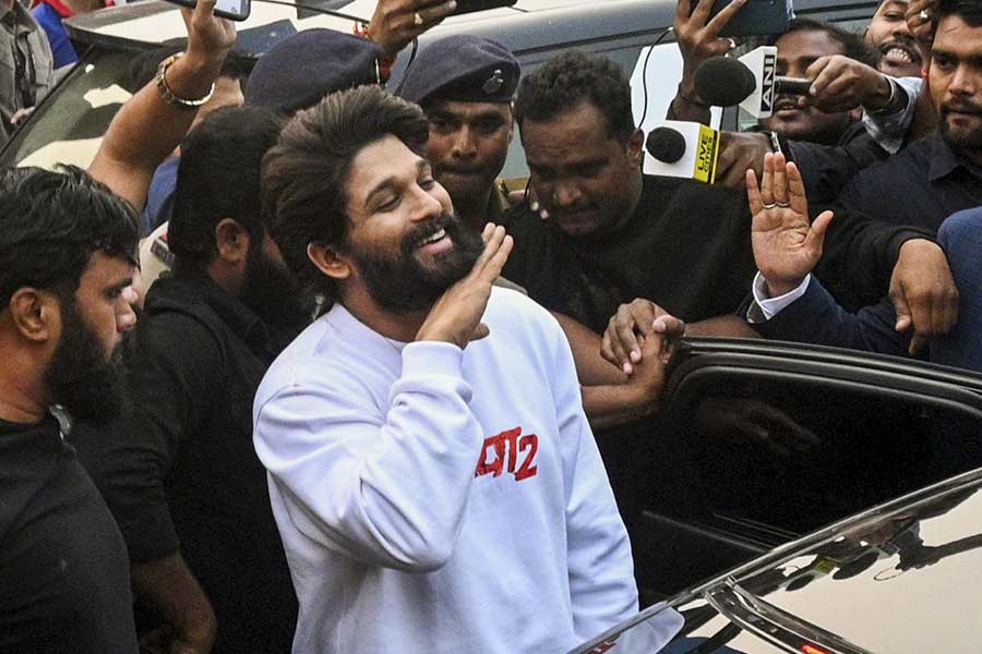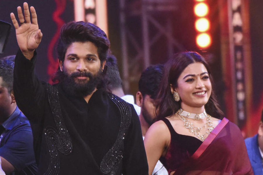 The event was attended by the film's stars Allu Arjun and Rashmika Mandanna as well as over 10,000 screaming fans. At one point, things seemed to be getting out of control as fans climbed barricades and structures to get close to the stars.