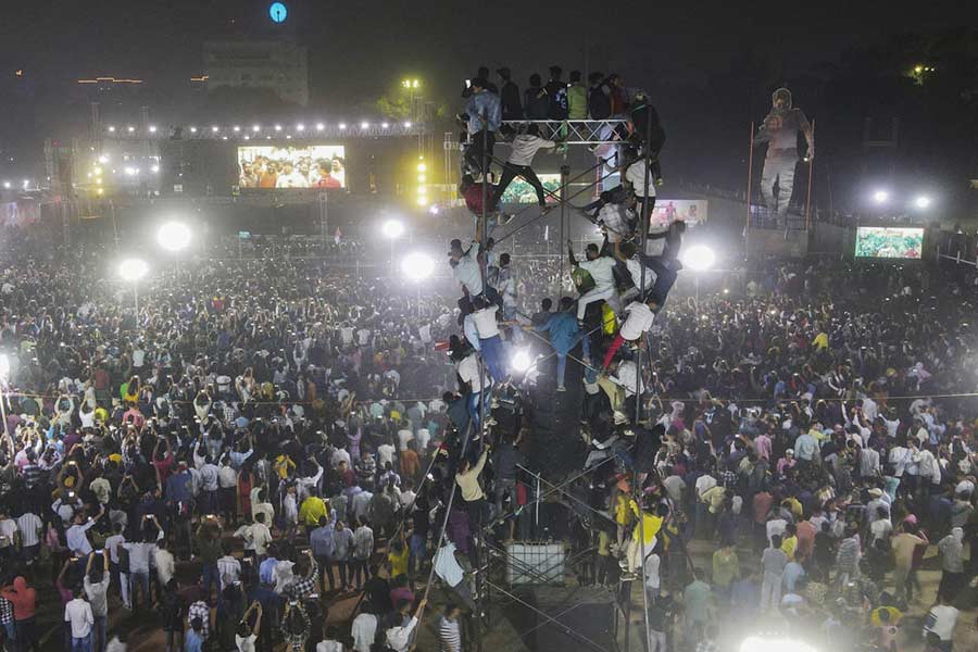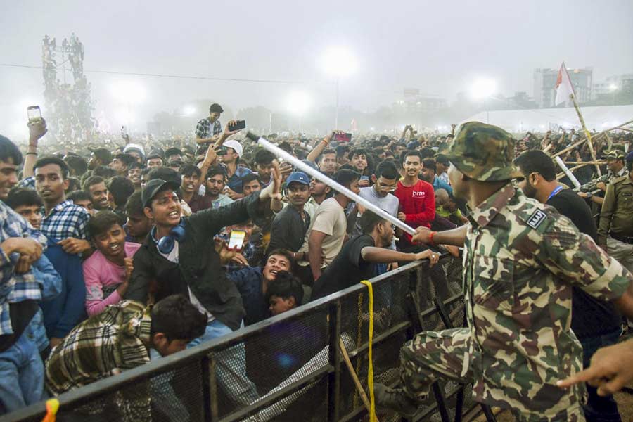 Videos from the event even showed some members of the crowd throwing slippers and other items at the police personnel when they were stopped from trying to get close to the stage or climb the scaffolding to get a better glimpse of the stars.