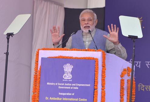 The prime minister, while inaugurating the Ambedkar International Centre earlier in the day, had hit out at the Congress, saying parties seeking votes in the name of the architect of the Indian Constitution's name tried to erase his contribution to nation building.