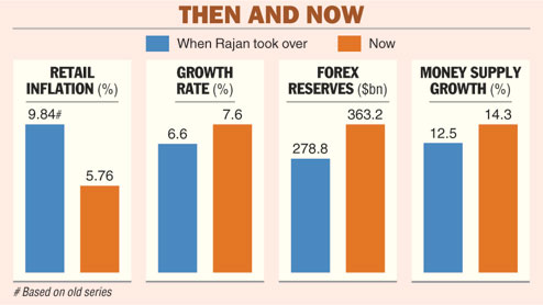 Rajan, who has often been seen as an inflation warrior, has been successful in wrestling retail inflation down to 5.76 per cent in May. The central bank now wants to bring the retail inflation down to 5 per cent by March 2017. Significantly, during his three-year tenure, the central bank chose retail inflation over wholesale price index (WPI) as the key measure of inflation.