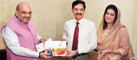 Shah first met Suhag at his home in Delhi Cantonment and handed him a booklet and a pen drive outlining the achievements of the Narendra Modi government. The BJP leader then drove to Gurgaon to meet Kashyap, regarded as a constitutional expert.