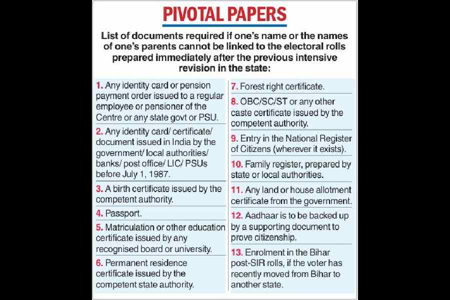 Unlike the recently concluded SIR in Bihar, all the voters will have to provide details of themselves and any one parent from the electoral rolls published after the previous intensive revision in their state, around two decades ago. (In Bengal, the previous SIR was conducted in 2002.)