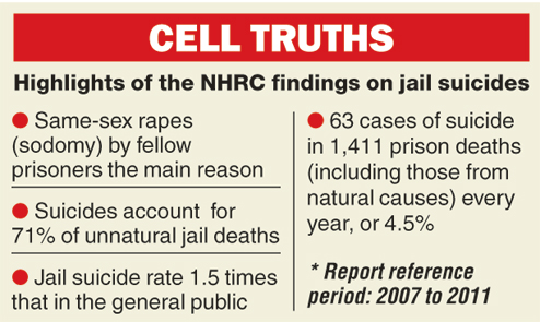 New Delhi, June 3: Same-sex rapes by fellow prisoners trigger most jail suicides, the National Human Rights Commission has said in a report, swivelling the spotlight to the administration of prisons and the plight of inmates.