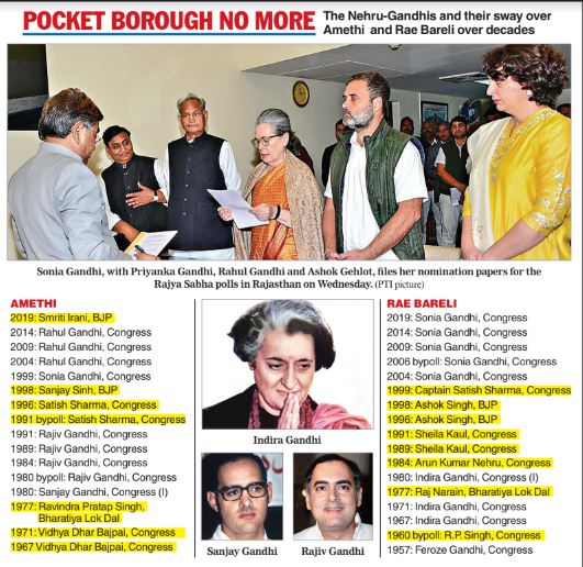 The 77-year-old Sonia, who filed her nomination for the Rajya Sabha from Rajasthan on Wednesday, won from Amethi or Rae Bareli six consecutive times since 1999. The Congress has enough cushion in the Rajasthan Assembly to afford Sonia a comfortable ride to the Rajya Sabha.