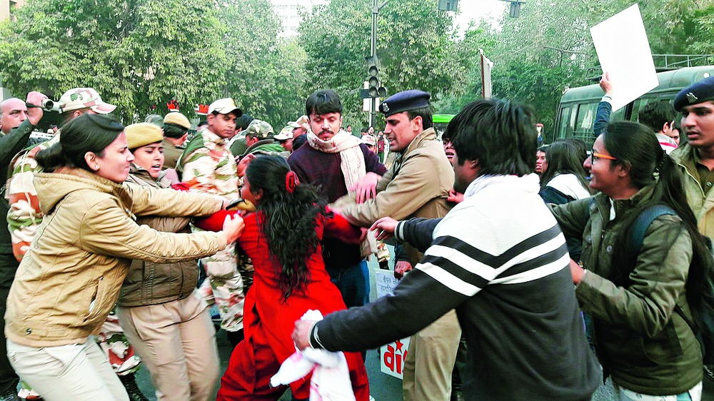 The police asked them to proceed to the protest plaza at Jantar Mantar Road, a short distance away, but the students insisted on turning left on to Janpath towards the HRD ministry at Shastri Bhawan.