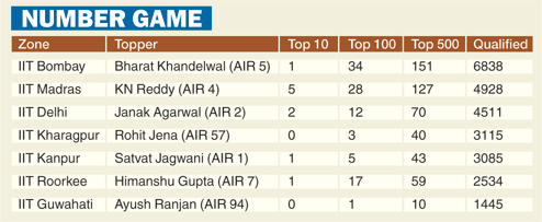Not only in terms of rank but also the number of students clearing the test from the IIT Guwahati zone is the lowest in all the seven zones. While only 1,445 students have cleared the test from the IIT Guwahati zone, the IIT Bombay zone has the maximum number of students (6,838) tasting success. According to the figures released by IIT Bombay, which conducted the exams, 26,456 of 1,17,238 candidates who appeared in the test qualified for admission to IIT branches and NITs. Last year, altogether 27,152 of the 1.36 lakh aspirants made the cut. (See chart)