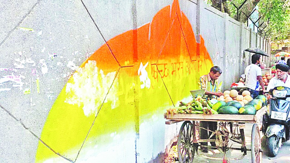 New Delhi, May 23: A French artist and an Indian associate commissioned by the Delhi government were forced by a crowd to deface their own wall-writing in praise of the capital in Urdu and replace it with the words "Swachh Bharat Abhiyan", one of the artists said.