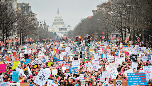 Hundreds of thousands of women flooded the streets as an unparalleled wave of “counter-inauguration” rolled in Washington and several other capitals on Saturday, a day after the inauguration of Donald Trump’s presidency. Organisers said the protests against Trump’s campaign rhetoric and misogynistic behaviour drew nearly 5 million across the world, far surpassing expectations.