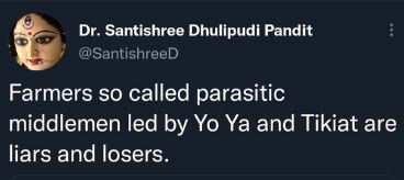 In May last year, Pandit had tweeted: “Farmers so called parasitic middlemen led by Yo Ya and Tikiat are liars and losers.”