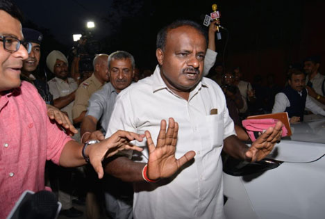 Kumaraswamy, who will be sworn in as chief minister on Wednesday for the second time in 12 years, had a busy Monday in the national capital, meeting Bahujan Samaj Party chief Mayawati, and Congress leaders Sonia Gandhi and her son Rahul, the party's president.