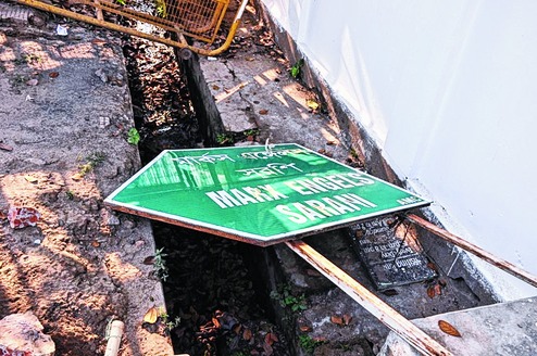 The "Marx Engels" plaque was replaced with the new one that mentions the name in the four languages on Tuesday.