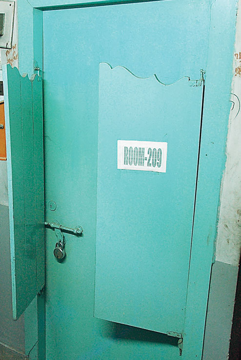 The locked Room 209 on British India Street in central Calcutta, which is the official address of Trinetra Consultant Pvt Ltd. Pictures by Bishwarup Dutta