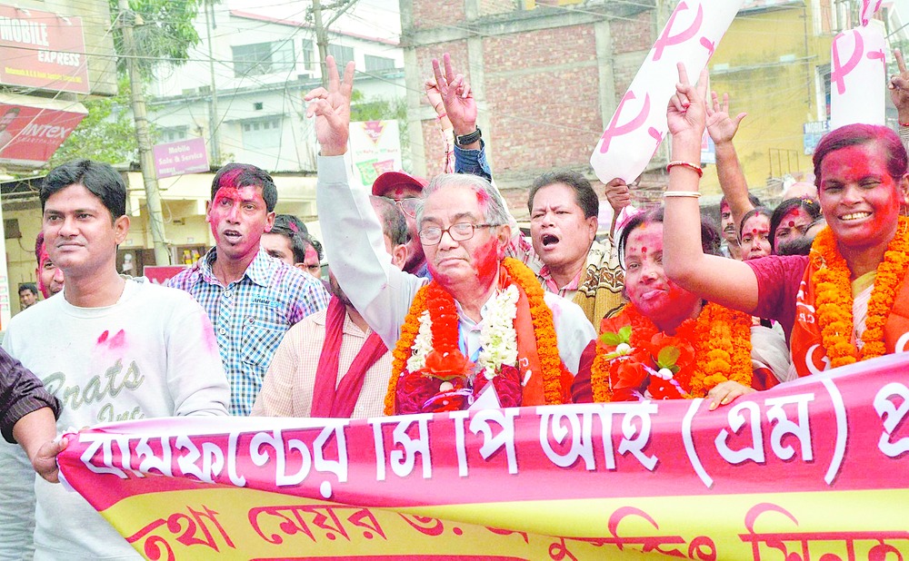 The CPM won all the 11 wards in Amarpur and Panisagar nagar panchayats. Though the BJP did not secure any seat in Panisagar, it bagged the second position. The CPM won all the nine wards in Sabroom nagar panchayat. In Sonamura, it won 10 wards, leaving only one to be picked up by the Congress. It also won Kamalpur nagar panchayat. It had won uncontested in six wards of Amarpur and all the 11 wards of Jirania nagar panchayats.