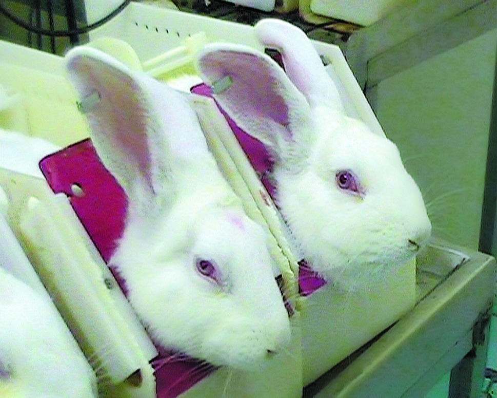 The HSI said the rabbit eye test was developed about 70 years ago to measure eye and skin irritation using rabbits while the animals are locked in restraints. The test chemical is applied to an eye or on the shaved skin on their backs.