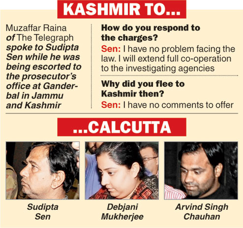 April 24: Saradha Group chief Sudipta Sen and his two aides were brought to Calcutta tonight on a four-day transit remand granted by a court in Kashmir where they were arrested yesterday.