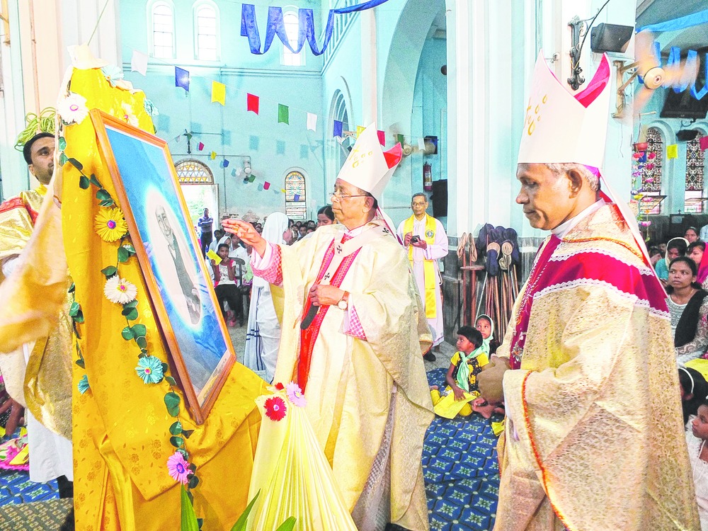 Accompanied by two auxiliary bishops Mascarenhas and Telesphore Bilung, Cardinal Toppo later today went to Mother House, headquarters of the Daughters of St Anne on Purulia Road, to lay wreaths at the statue of Mother Mary Bernadette.