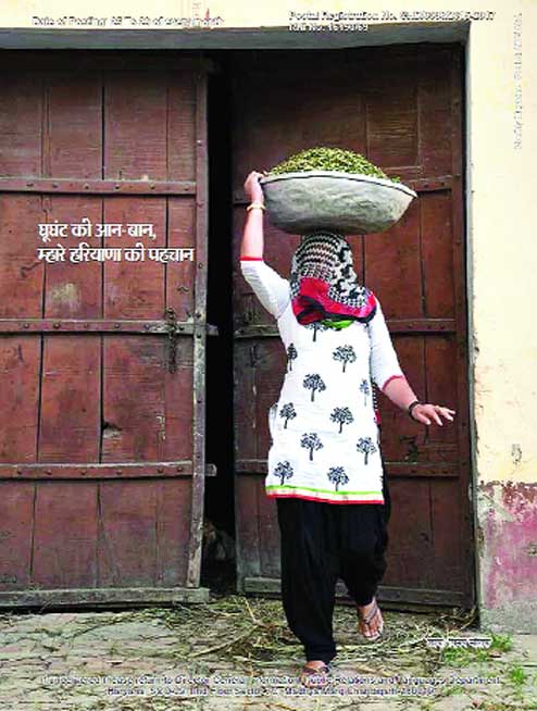 "Ghoonghat ki aan-baan, mhare Haryana ki pehchaan (the pride of the veil is our Haryana's identity)," says the slogan with the photo of the veiled woman in the latest edition of Krishi Samvad, a print and web magazine on agriculture-related news.