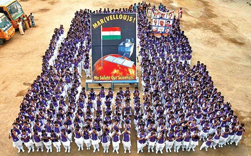 | Students at a Chennai school celebrate the Mars mission. (Reuters) |