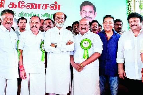 Actors Kamal Haasan and Rajnikanth shared a platform on Sunday for the first time since the former attacked the ruling AIADMK regime amid signals that the superstars might be testing political waters.