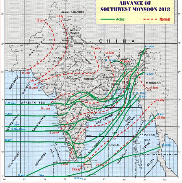 Documented weather records suggest that the monsoon can cover the entire country up to about two weeks ahead or after the normal date of July 15.