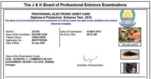 In what is turning out to be an embarrassment for the M.M. Sayeed-led Jammu and Kashmir government, a cow almost got a ticket to enter an engineering college after the state's Board of Professional Entrance Examinations issued her an admit card for a test.