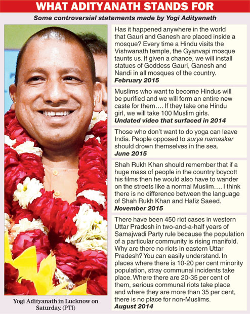 About the only institution Yogi Adityanath, aka Ajay Singh Negi, originally from Garhwal, has ever presided over is Gorakhpur's Gorakhnath Math, a prosperous temple trust. As mahant of the Math, Adityanath has been used to wielding unquestioned authority and expecting blind obeisance. Such, that he has often brooked no restraint from the law and flagrantly violated it. Jailed once in 2007 for encouraging Hindutva rioters and flouting prohibitory orders, Adityanath has often not been ashamed to play outlaw. This man is now the law in Uttar Pradesh.