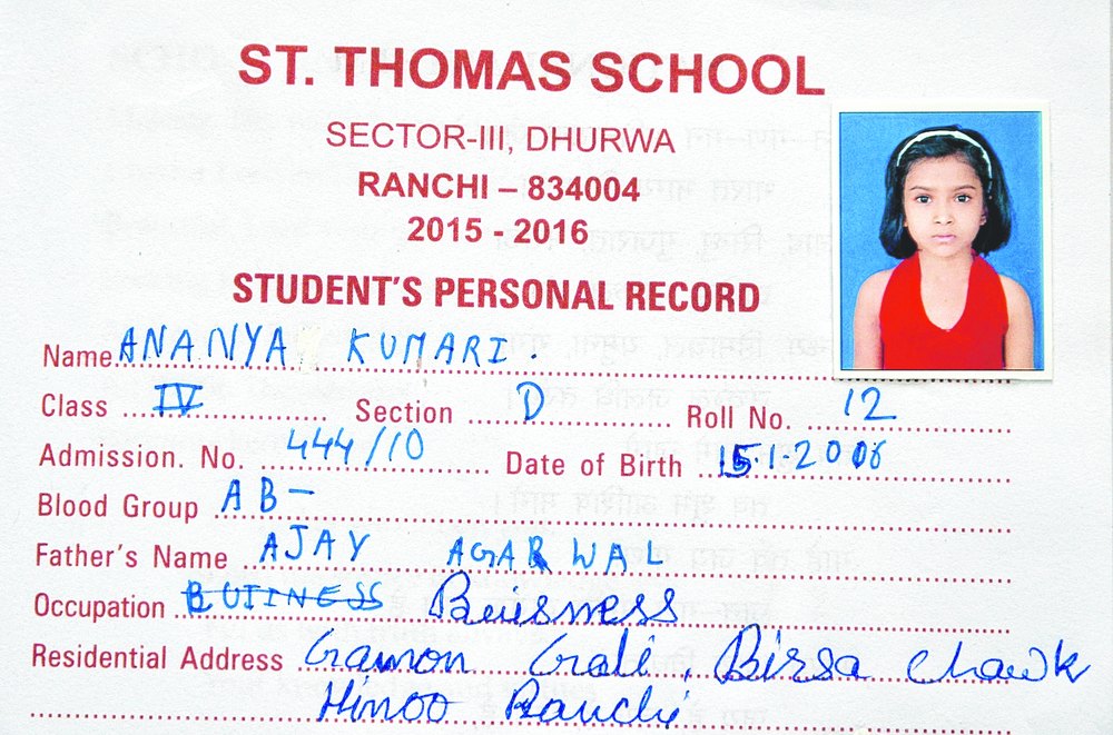 Daughter of flourmill owner Ajay Agrawal, Ananya lived at Birsa Chowk, 4km from school, with her father, mother Tripti Agrawal and younger brother Anshuman, a Class II student of Sarla Birla School.