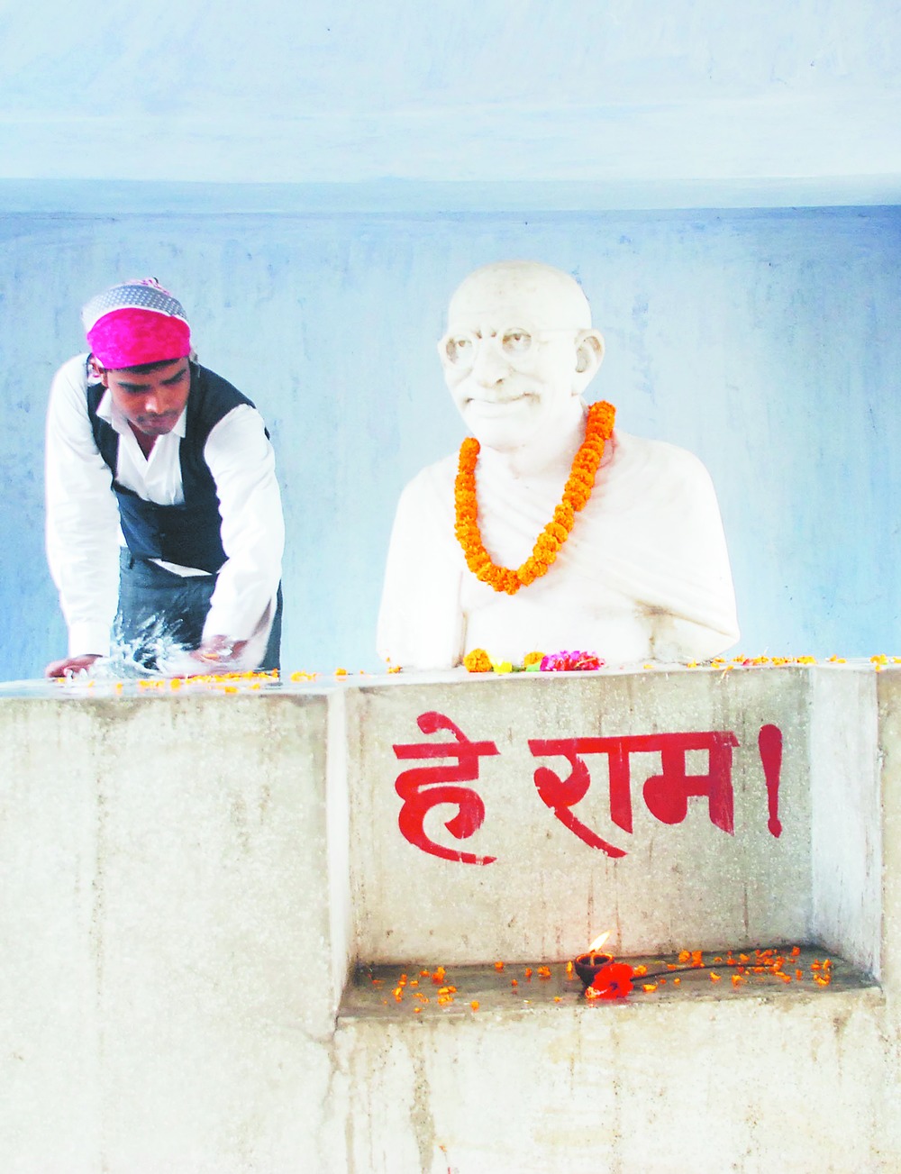 Md Jahiruddih Ansari, a commerce graduate and a UPSC exam aspirant who comes to the Gandhi Seva Sadan library every day for reference work, cleans the bust of Mahatma Gandhi there every morning without fail. He also lights a diya at the state library some 200 metres away from Gandhi Seva Sadan every evening when he goes there to study because he feels "libraries are the temples of education".