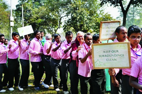 The 22-odd students of Sonari-based Jeevika, an NGO involved in the welfare of the mentally challenged, walked half-a-kilometre at the green lung, holding placards that read "change habits, not the environment", "clean India, green India" and "clean our surroundings."