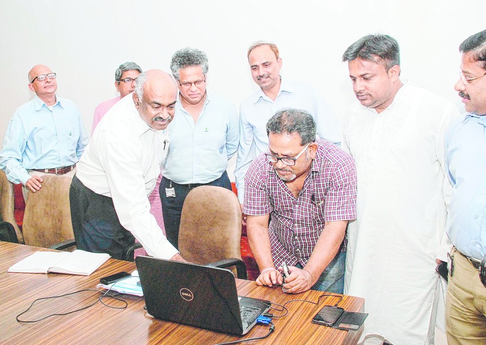 Tata Steel VP (corporate services) Sunil Bhaskaran (left) launches the app in Jamshedpur on Friday. (Bhola Prasad)