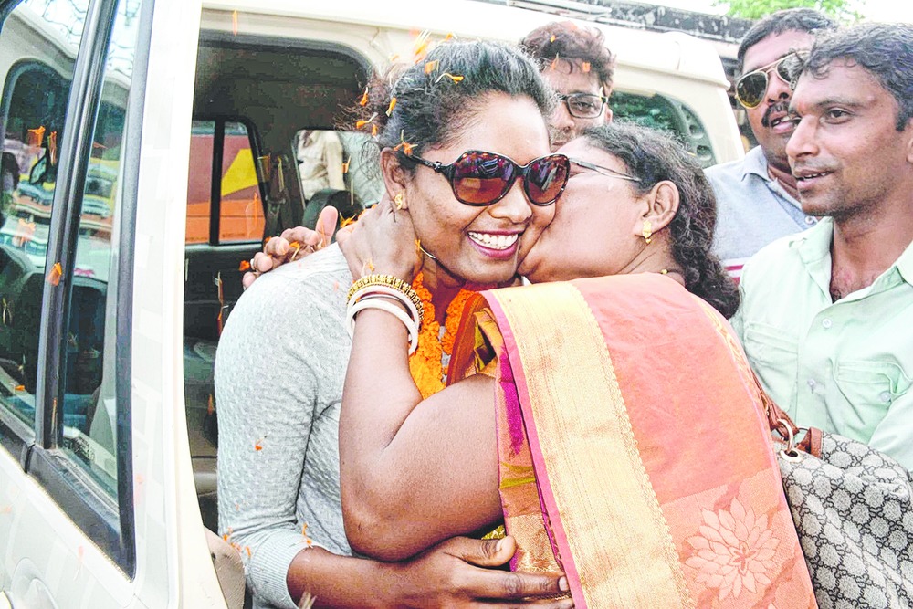 Olympic ticket in kitty, recurve archer Laxmirani Majhi gets a fond hug and a kiss from mother Padmini near Tatanagar in Jamshedpur around 4.30pm on Wednesday.