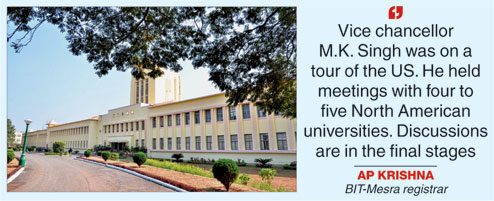 "Recently, vice chancellor M.K. Singh was on a tour of the US. He held meetings with four to five North American universities. Discussions are in the final stages. We will make a formal announcement once deals are signed," he said, adding that if everything fell into place, BIT would be, for the first time, sending students and faculty for summer internships and exchange programmes to foreign shores.