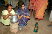 For chilka the heated tava is greased lightly with oil. Rice paste is then scattered very lightly and deftly with oil, using fingers. The surface is then greased again with specially made chapatis (made of sal leaves). It is turned over with with the help of special khusni (preferably made of iron) and since the layer is very thin, it hardly takes a minute or so for a chilka to be cooked.