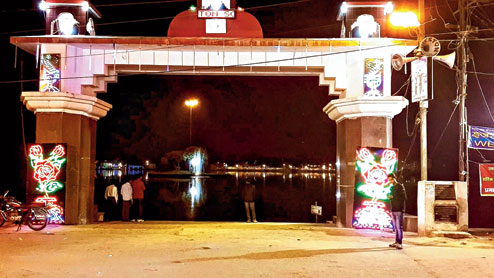 A water fountain was placed on the lake’s island. Arteries from Main Road — Lake Road and JJ Road — which join near a temple along the lake and stretch to Kishoreganj Chowk, were decorated with flowers, balloons and streamers.