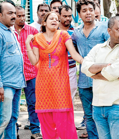 | “I often requested my husband to stop this rivalry (with another Patratu gang). But, he did not pay heed. Now, I will have to spend my life alone,” Nishi, 28-year-old widow (in picture top) of alleged extortionist Pandey, cried in Jamshedpur on Thursday, a day after her husband and his friend were murdered. The couple’s Vijaya Heritage duplex in Kadma. Pictures by Animesh Sengupta |
