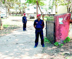 A CCTV camera at hostel No. 5 and security guards at hostel No. 6 of RIMS on Tuesday. (Hardeep Singh)