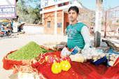 | A vendor offers colourful capscicums in front of Ranchi University headquarters last month. Picture by Prashant Mitra |