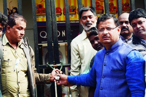 The agitated residents, led by local BJP leader Vikas Singh, stormed into the theatre, located near the colony, at around 10.30am and locked its gates.