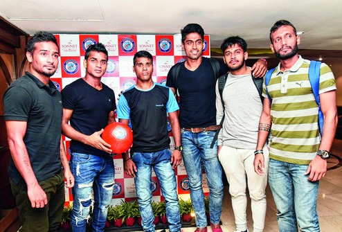 Jamshedpur FC players at a steel city hotel on Sunday. Picture by Bhola Prasad