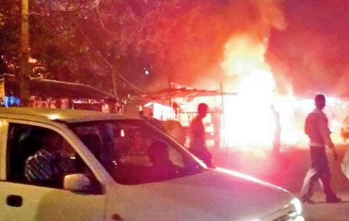 | The cracker shop on fire at Sector IV in Bokaro on Tuesday night. Picture by Pankaj Singh |