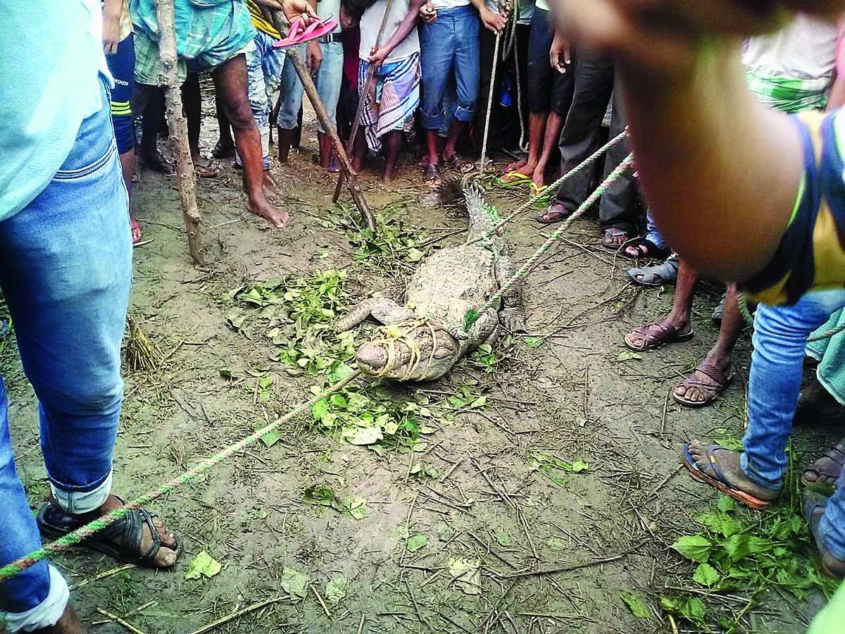 Ranchi: A young crocodile who was swept out of the swollen Ganga entered a village near its banks in Sahebganj district, 400km from Ranchi, on Wednesday morning, arguably for the first time in recent memory.