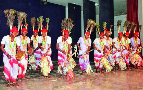 Dressed in white dhotis and colourful turbans, the well-built dancers showcased the strength of unity. With peacock feathers and instruments like madol, flute, dhamsa, jhanj and kartal, this turned out to be an elaborate and excellent performance.
