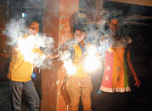 | A bunch of beaming children adds sparkle to Diwali in Lalpur, Ranchi, on Thursday. Picture by Hardeep Singh |